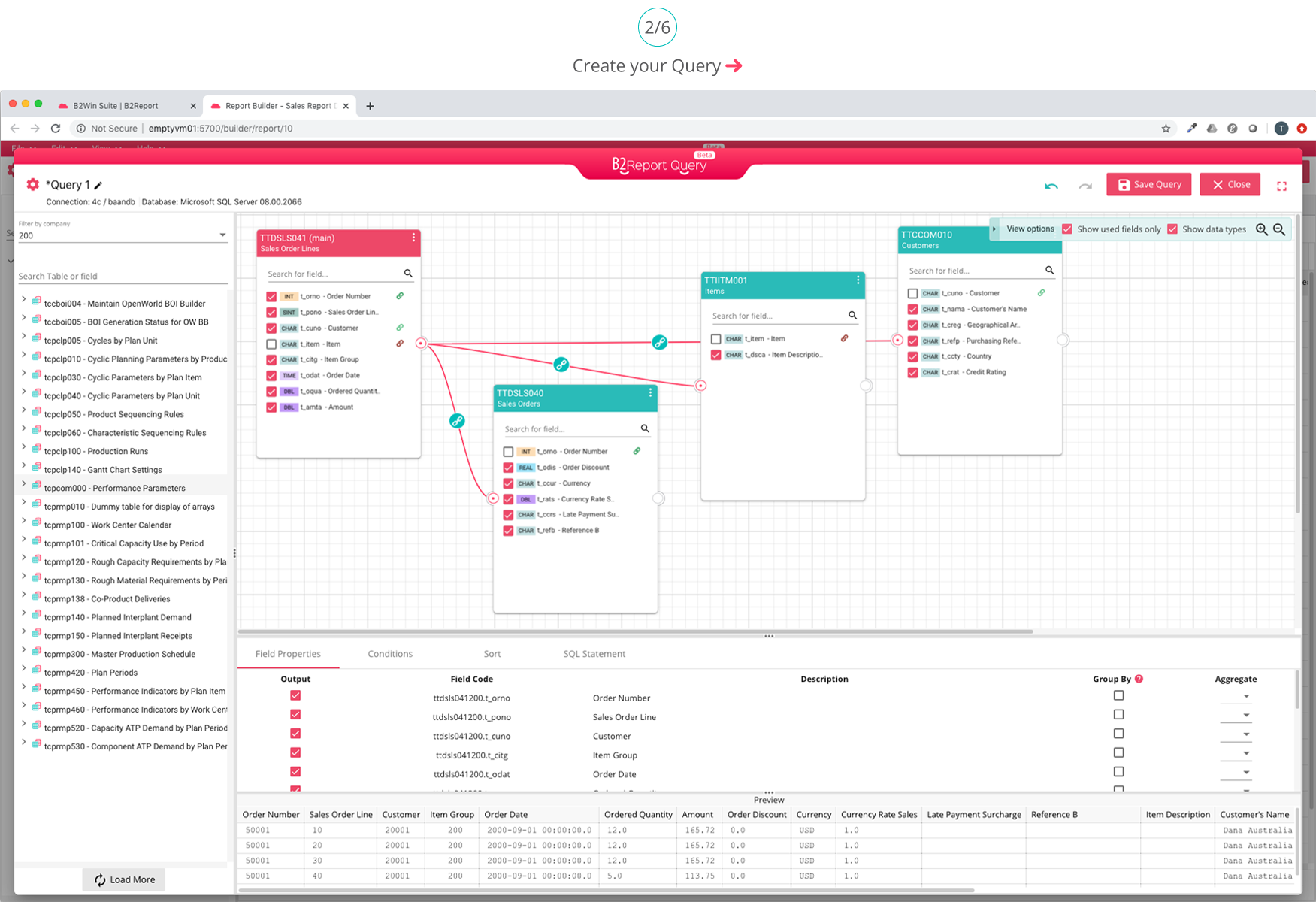 A visual Report Builder, enabling you to easily take data directly from your ERP, CRM, or any other business application or database to create meaningful reports.
